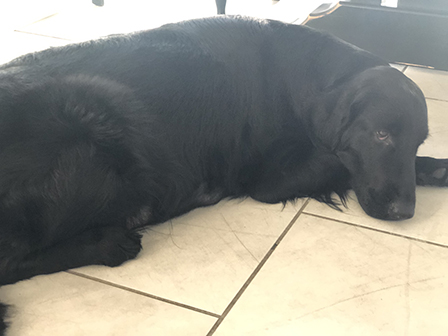 10.02.25. En flott søndag med masse kos og lek i stua med besøk gjennom dagen :-) De sov godt i går kveld kan jeg love :-) I går var Kjell på utstilling igjen og det ble igjen utrolig flotte resultater på Av-Zan-Iaz hundene. Det aller mest gøye var jo at lille Reale Leah var på sin første utstilling å gikk hele veien fra å vinne klassen sin bli best valp 4-6 mnd i rasen samt at hun slo til å ble Best in Show valp 4- 6 mnd over alle retrieverne :-) Ecco vant også champion klassen og ble beste hann hund og BIM :-) Har lagt ut alle resultatene fra helgen under resultater for de som har lyst å se :-) I dag er -4 grader å vi løper ut å gjør i fra seg for så å forte oss inn igjen for å leke inne. De synes det er surt å kaldt merker jeg . Her er jente hale /Luna Nova og jente høyrebak /Ronja