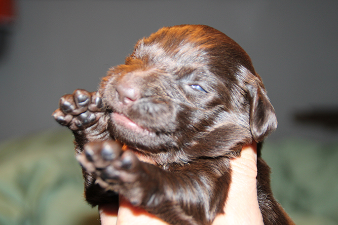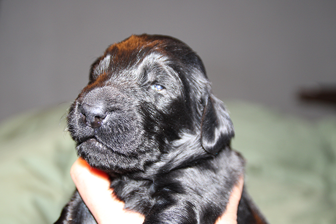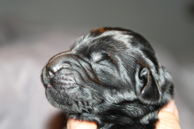 14.01.25. I dag er de skjønne diamantene blitt 3 uker allerede. Det er dags for en klo klipp ,vekt sjekk, Hmmm de er gode og runde så de har økt bra :-) ,og en mark kur som går over tre dager. den gruer jeg alltid for. Den kan være litt hard på magen men vi får håpe de sklir greit igjennom den. Viktig å få så de ikke blir syke :-) Kjell åpen valpekassen enda mer i går å de traver/vagger rundt :-) Her er jente hode og jente rygg