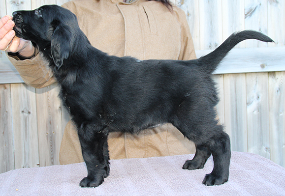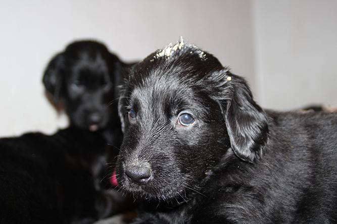 09.02.25.Trolla stor kosa seg med Elin her i går å besøk når vi var borte i går. :-) TUSEN TAKK Elin for en super jobb med de små :-) De hadde fått masse oppmerksomhet og kos :-) I går kveld fikk de være med oss på kjøkkenet når vi spiste middag å det var også gøy. Det var en FANTASTISK dag på utstilling i går. Ecco som onkel ble 2 i champion klassen med CK og 2 beste hannhund totalt av over 80 flatter . Og lille Izie ble nr 1 i junior klassen med CK og fikk Junior certet og junior Cacib. Aia ble nr 2 med CK i bruks hund. Qule Birk ble nr 2 i junior klassen med CK . Samt flere flotte bedøminger av Av- Zan-Iaz hunder :-) CK er en forkortelse av premien Championat kvalitet for de som ikke vet det :-) Så vi var strålende fornøyde. Ikke nok med det vi fikk svaret på Hofte sjekken vi var på med med Izie og Velma hos veterinæren på torsdag . Begge små jentene er HD fri A :-) I dag reiser Kjell på utstilling i retriever klubben med en gjeng mens jeg holder hus her hjemme med besøk gjennom dagen :-) Det er morsdag i dag også så mamma og søster Torun kommer på litt kos midt mellom besøkene. Så dagen er full med mye gøy i dag også :-) Her er jente hode /Frøya og jente rygg /Molly.