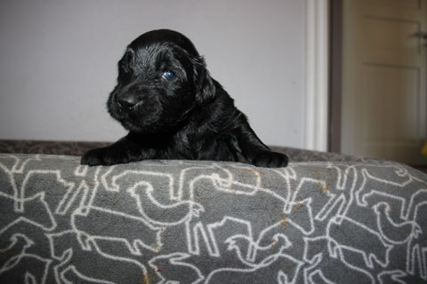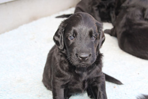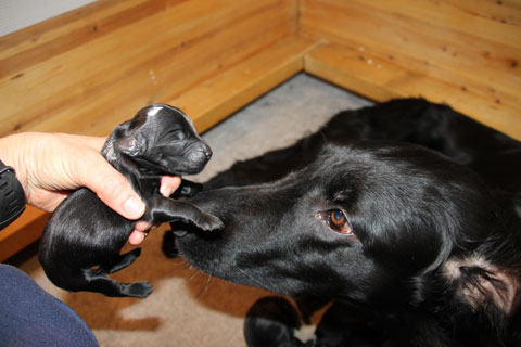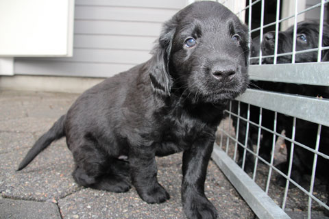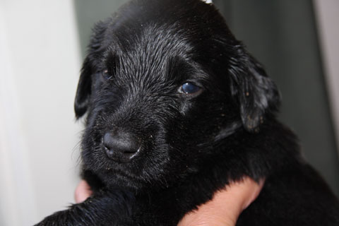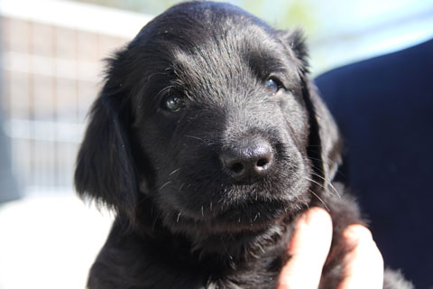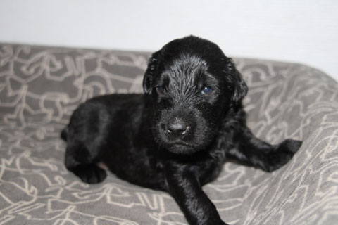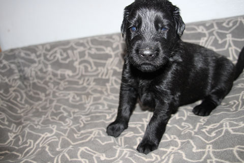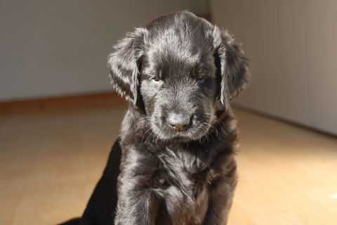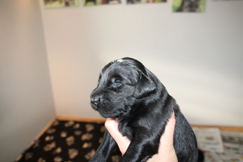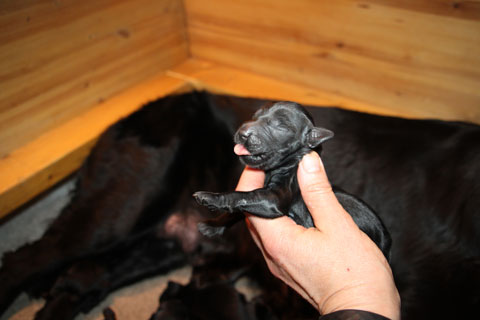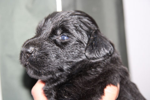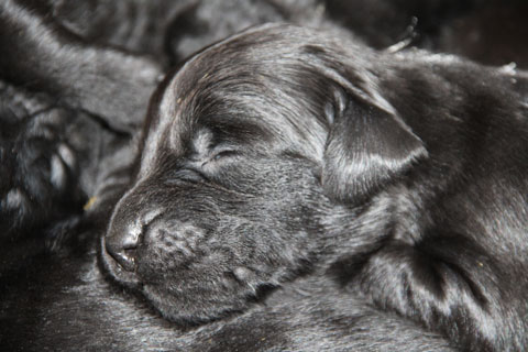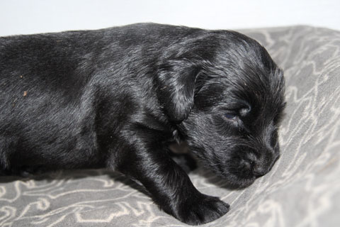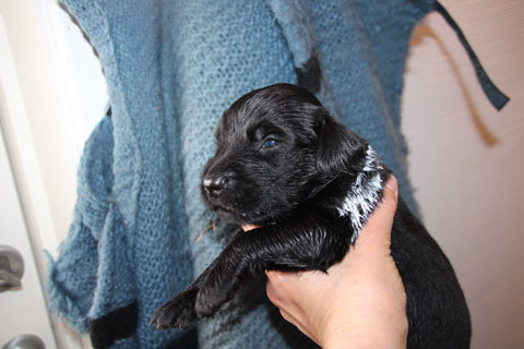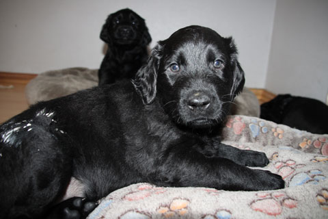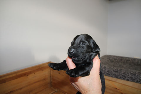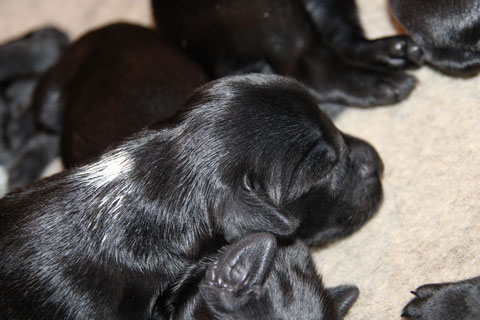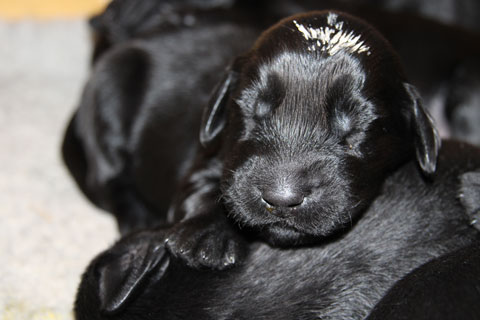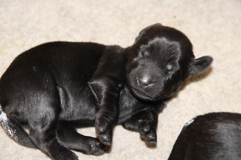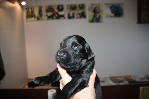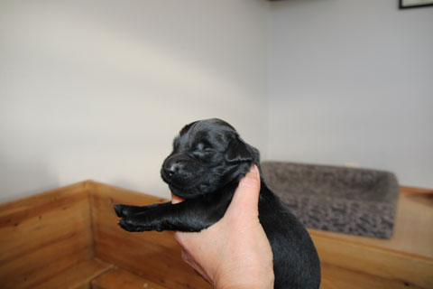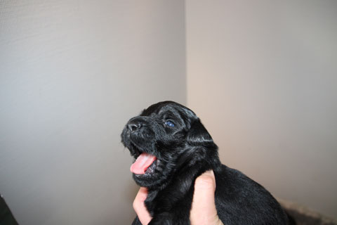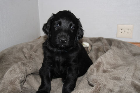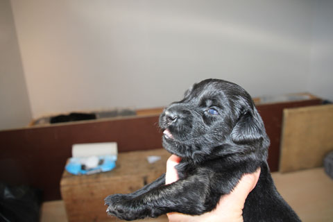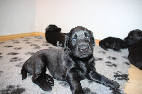 02.04.20. Nå har de første valpene begynt så vidt å åpne øynene :-) det er så spennende .Foreløpig er det små gløtt i øyen kroken på flere men i løpet av dagen og morgen dagen tenker jeg de har åpnet mer. De kniper når det blitzer når jeg tar bilde foreløpig så ikke lett å få det på bildet :-) Her er Gutt merket venstre bak og gutt merket høyre bak
