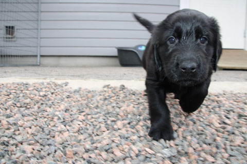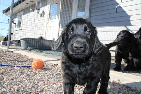 09.05.20. Nå er den store verden mer spennende en å være hos seg selv. de elsker å løpe fritt m,en er flinke til å komme når jeg blåser i fløyten. Alle får med seg en fløyte og en dummie til hver sin valp så man kan kose seg videre med treningen hjemme :-) Her er jente rumpe og gutt rumpe