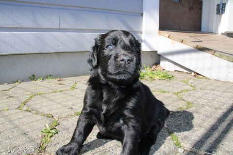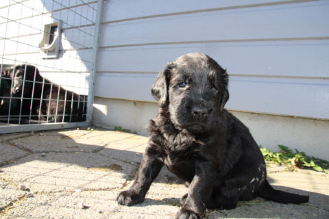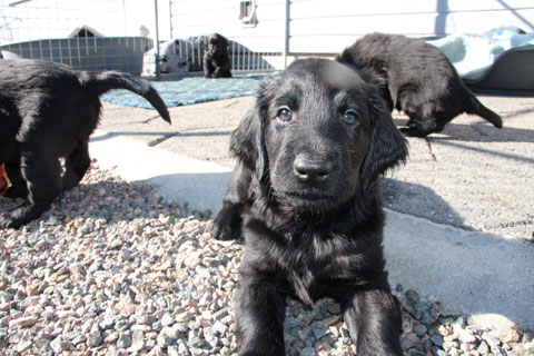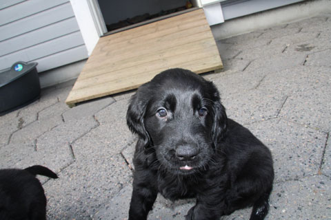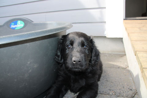 17.04.20.I går fikk de små begynne å være med på korte turer ut. Det vaar mye lyd  første turen :-) Men jammen bæsjet 5 stykker ute.  dag etter frokosten bar jeg også alle ut å fikk noen bæsjer ute.satser på pent vær fremover så vi kan få det meste av det som kommer ut bak ute :-) her er Gutt venstre bak og gutt høyre bak