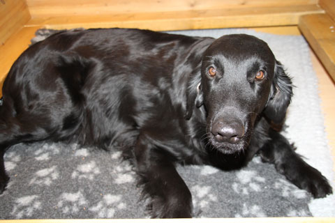 19.03.20. dag 60 fra første parring . Norah har fått et mer innover vendt blikk.Om jeg kan kalle det det. :-)Hun  spiser foreløpig 3 måltider . Tempraturen har gått litt ned. Den ligger nå rundt 37,5 Normal temp på hund er ca 38,2 og tempen må helt ned mot 36 for så å gå opp igjen før fødsel kan starte. Hun har est litt til i løpet av natten nå måler hun 83 på det tynneste og 93 på det tykkeste :-)