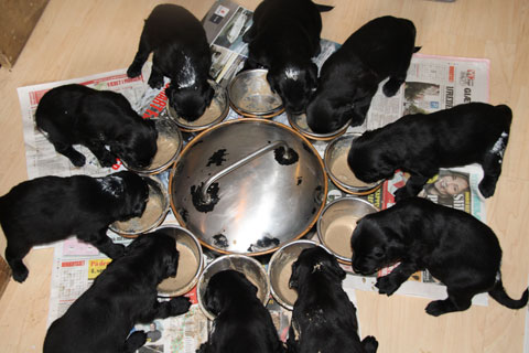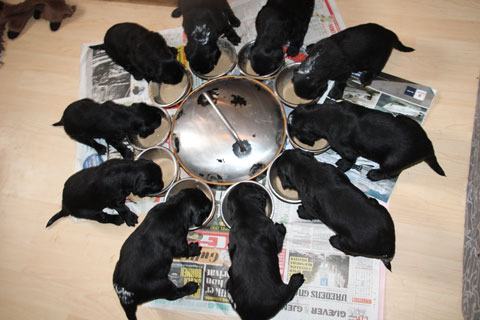 13.04.20. I dag klipper vi klør og starter på en tre dager s obligatorisk mark kur. som de skal ha ved 3 uker s alder. De kan få litt dålig mage av den men vi krysser finger for at det går fint. Grøt øver vi nå med to og tre av gangen på å spise pent ved siden av hverandre :-)Her er Gutt venstre foran og gutt hode