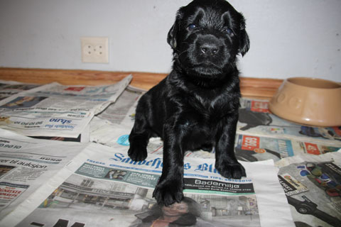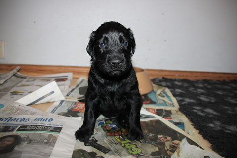 07.04.20. Tenk i dag er de skjønne trolla blitt 2 uker gamle. Klo klipp er på menyen i dag PHUUU :-) Vi måtte åpne opp valpekassen i går. Den første var på vei over :-) Så nå har de fått stor verden å stor koser seg med det. Det vi nå skal lære er å komme seg over på avisene for å bæsje å tisse der. I starten drar de fronten av kroppen over på avisen for så å tisse mens bakparten er igjen på teppe :-) men dette kommer fort :-) I dag skal de smake den første valpegrøten også. Det blir spennende det :-) Her er Gutt venstre bak og gutt høyre bak
