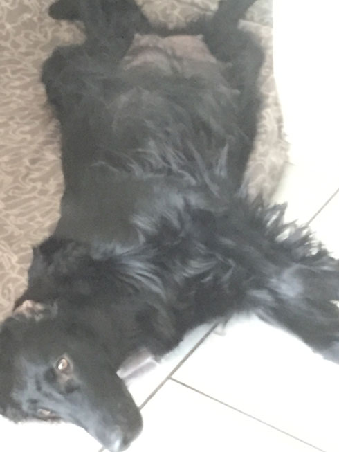 25.04.20.I dag er det nytt besøk her. De setter stor pris på at det kommer noen andre hver dag nå. Noen ganger kommer det besøk flere ganger . Å gjett om de er slitne når kvelden kommer. Kjenner at jeg ønsker meg 12 timer til i døgnet for tiden . Ikke alt man rekker som man kunne tenke seg nå . Men slik er det jo . For 18 troll totalt i huset + lille Kimmie på 15 uker og 8 voksne . Det tar tid :-) Bare oppvasken av matskåler. 18 x  4 måltider  for valpene . Mamma hundene 2 x 3 måltider . Kimmie 3 ganger måltid og de andre voksne 7 x 2 måltider. Det er en del matskåler å vaske opp på en dag :-) Her er jente nakken og gutt nakken.
