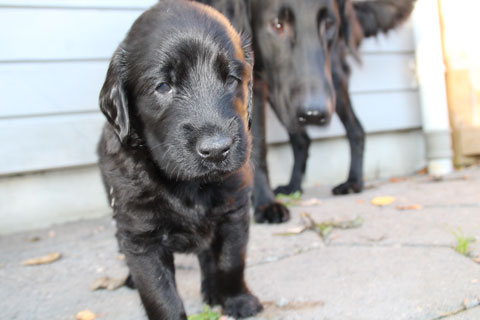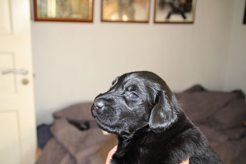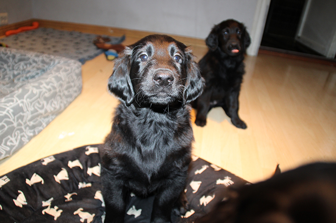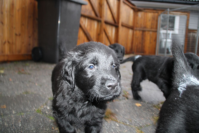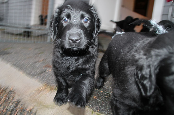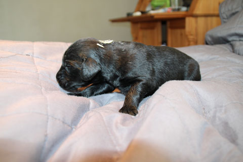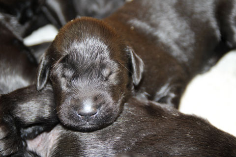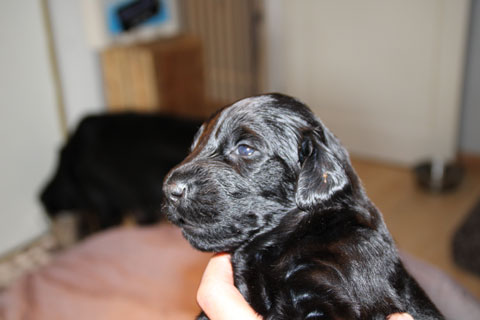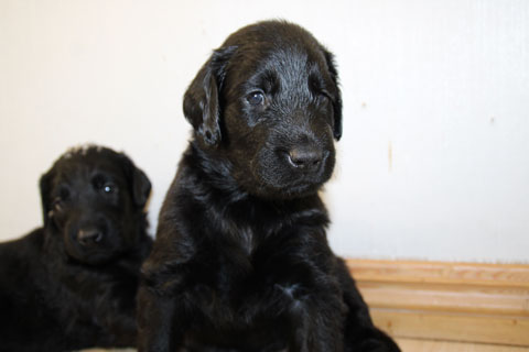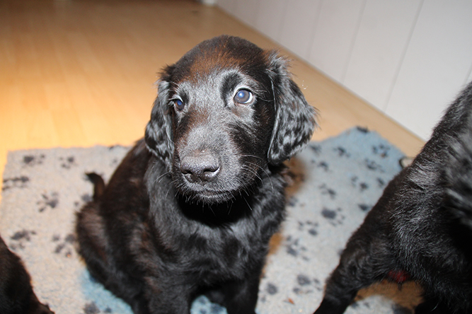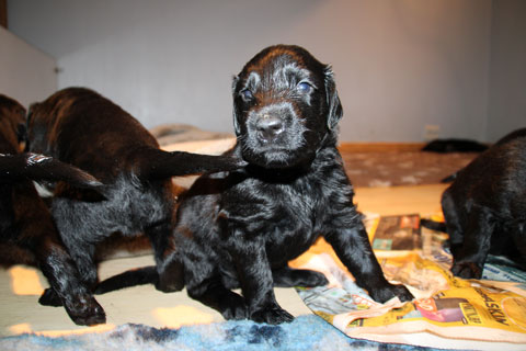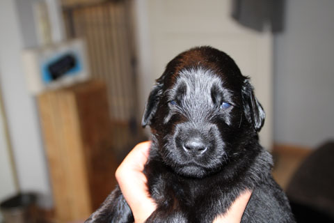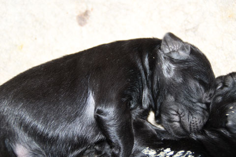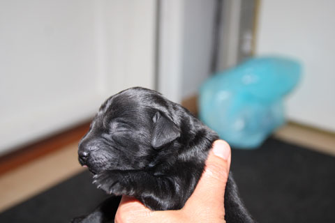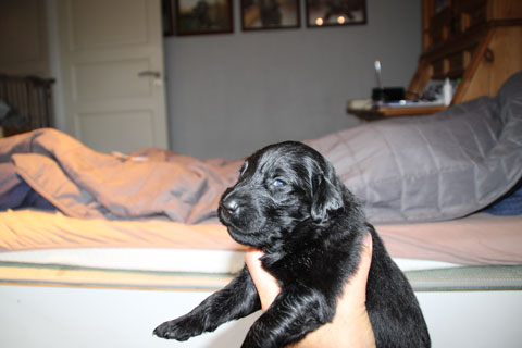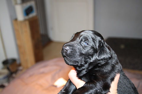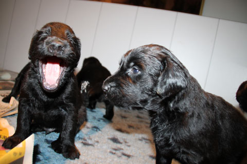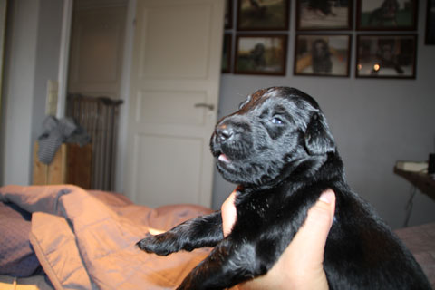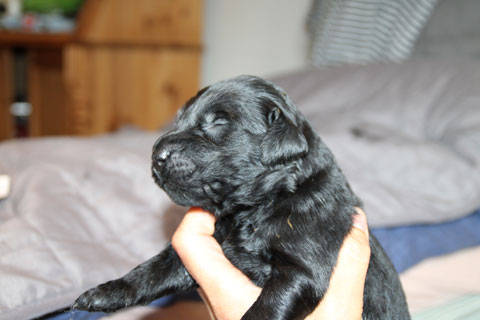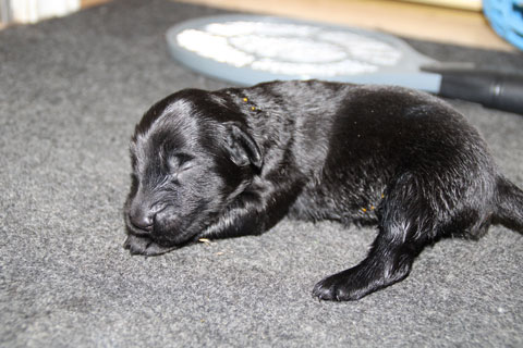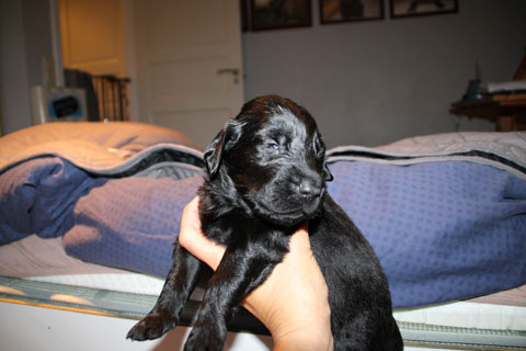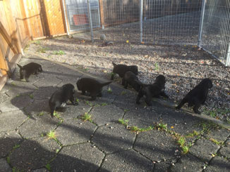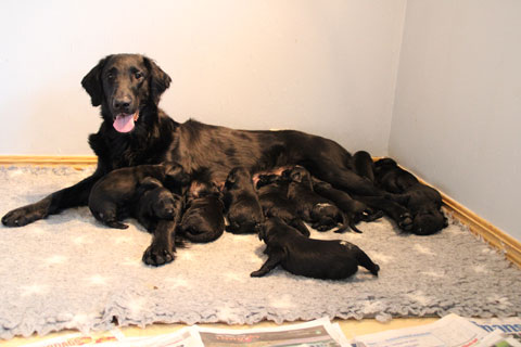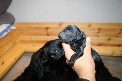 Kl 17.50 De to første valpene er kommet :-) 2 flotte sorte gutter :-) Emma er helt fantastisk med sine skjønne troll. Flere vil ut :-)