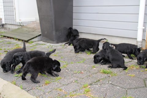 13.09.20.Emma har funnet ut at nå ikke trenger å ligge pal i valpekassen. Så nå blir hun fornøyd med på litt turer. Koser seg og er veldig glad når hun kommer hjem til de små igjen..Grete har vært her med henne frem til nå men i dag må hun tilbake til Bergen så Emma og trolla får klare seg med meg fremover nå. De spiser og koser seg å legger godt på seg alle sammen Så tenker det går veldig bra jeg :-) Her er gutt merket høyre bak og gutt merket venstre bakfot