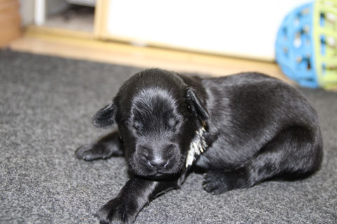 27.09.20 mat i tre omganger falt veldig i smak. Nå tror jeg faktisk jeg må åpne valpe kassen enda mer så de får større plass å bevege seg på her :-) I går gikk onkel Scott . Emma bror på jakt prøve og fikk en meget god 2 premie. :-) Kjempe gøy. Tror Emma gleder seg til hun kan jobbe igjen også. Hun byr villig frem ballen og lurer på om vi skal gå ut å gjøre noe når små trolla sover . Her er Guttnakke og jente halen.