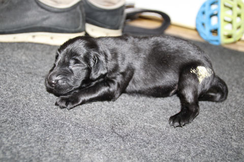 12.09.20. I går ettermiddag ble det fødsel på nabo rommet. Emma lurte fælt på de som ble født der. Hun ville gjerne ha de inn til seg :-) Små trolla tar livet med stor ro. Det er et mye liv når de er våkne ale 11 samtidig og leter etter hver sin pupp. Det yrer i valpe kassen :-) Så når melken er sluppet ned av mammaen og de er mette og fornøyde sover de godt igjen. De er bare helt til å spise opp og man blir liksom ikke mett av å sitte å se på de små vidunderne . Her er jente merket venstre fot foran og gutt merket høyre fot foran