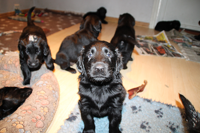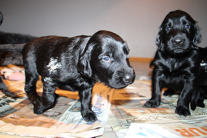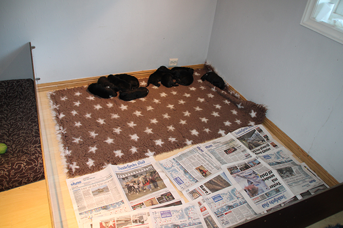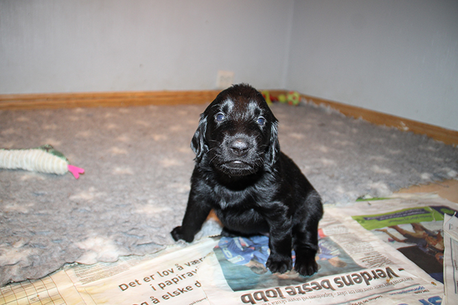 29.11.20 Det var deilig med større plass. Allora satte også pris på det. Så er det nå å lære å gå ut på avisene for å tisse å bæsje. De vakler seg over nå men glemmer litt at bakrkroppen også må være med og at man må vente med å tisse til hele kroppen er ute av teppet :-) Men det kommer :-) Her er alle så er det jente merket halen og gutt merket halen.