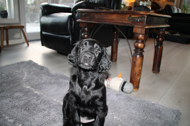 30.12.20. I dag er det Kjell som holder hus hjemme mens jeg jobber :-) Besøk blir det i dag også på trolla våres. De elsker nå å gå tur i den store verden :-) De kommer fløyten når vi piper så de er flinke på innkalling nå. Nå må vi heve skille veggen vi har satt videre ut i huset for de klatrer over. I natt har jeg måtte opp 3 ganger for å løfte valper tilbake der de skal være. Her er JFF/Zara og GHB/Odin