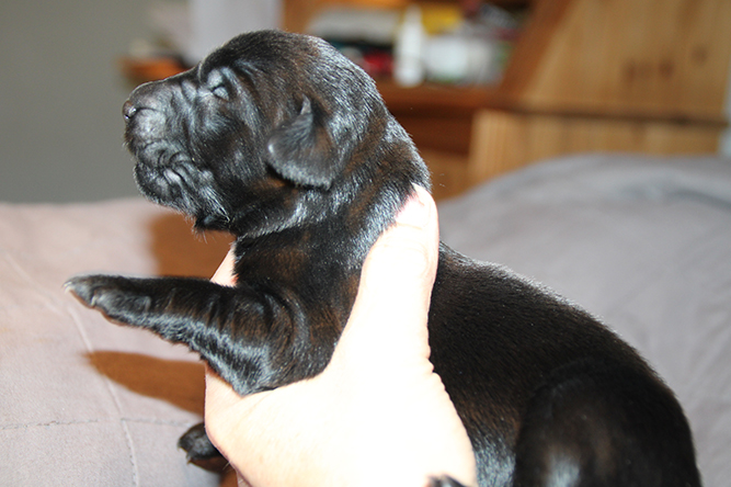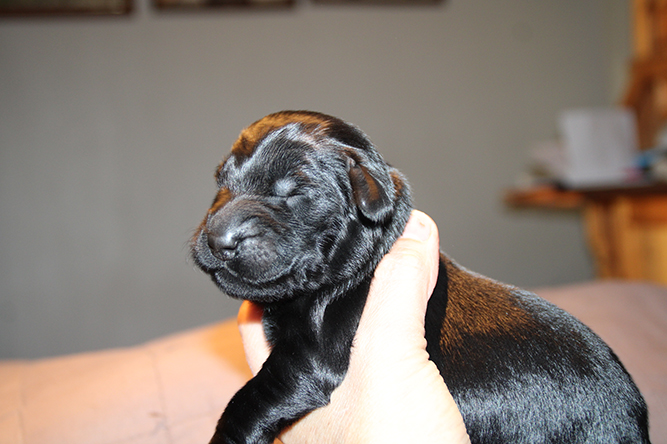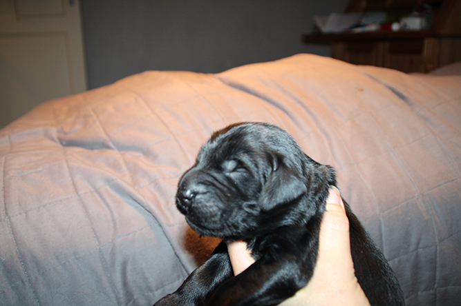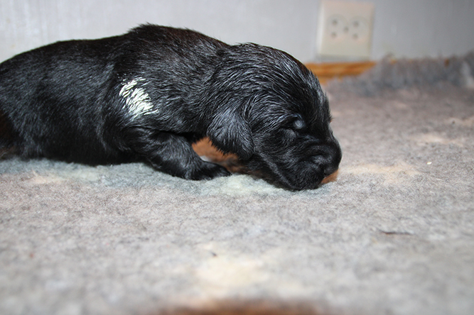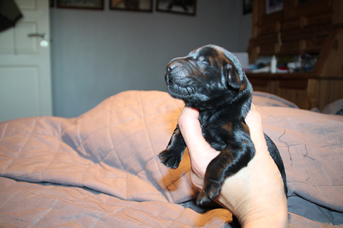 01.12.20 . I går fikk de smake litt hundegrøt to ganger. Det er godt det. Merker også at de blir roligere av å få fast føde i magen. Sover lenger mellom melken da. Så det metter mer. Det er trangt i melke baren nå så når Allora legger seg ned for å gi melk må jeg passe på at alle får hver sin pupp. Det er så sinnsvakt trangt :-) I dag jobber jeg en del timer og Nina kommer å passer her fra jeg går til Kjell kommer hjem . Da er de i trygge hender :-)Her er Jhode og gutt hode.