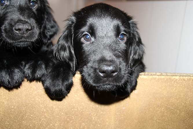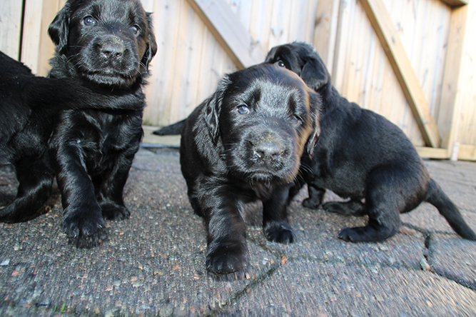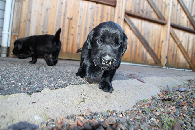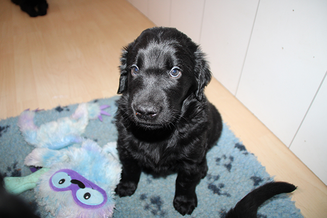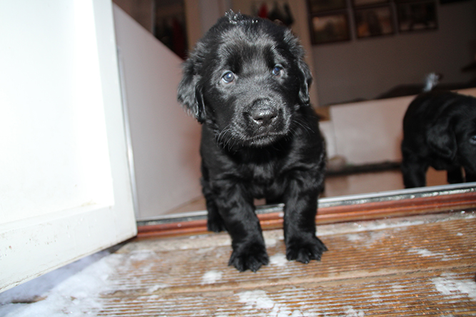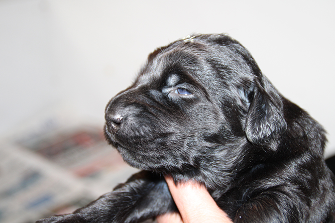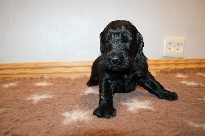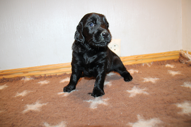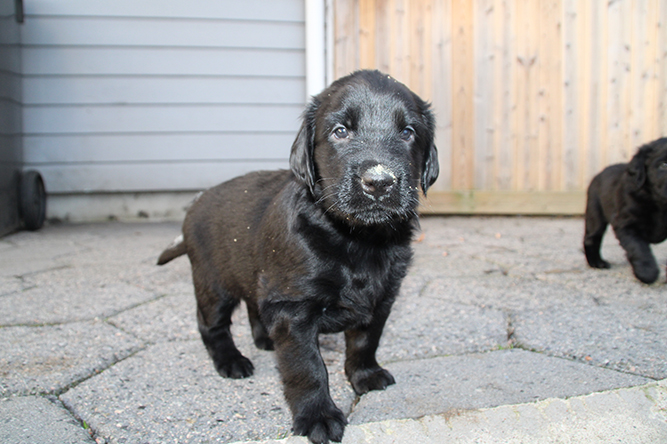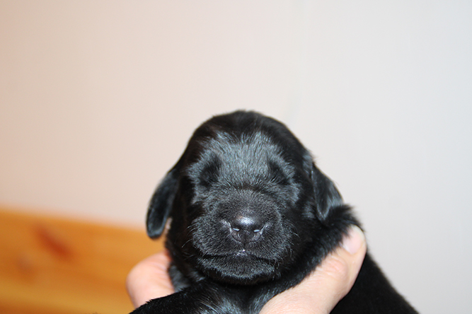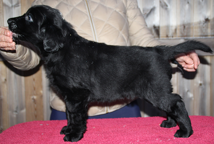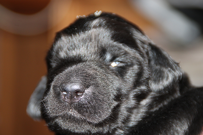 28.10.21. Det er fart i de små sorte gullende når de våkner nå. De åler seg fort gjennom valpekassen på leting etter puppen og melken :-) Ikke alltid like lett å få lagt seg Mille står noen ganger å ser litt fortvilet ned på haugen med skjønneste som åler rundt å funderer tydelig på hvor skal jeg legge meg fort ned så jeg ikke ligger på noen . :-) Hun er kjempe flink :-) Her er jente merket på rumpen og gutt merket på rumpen