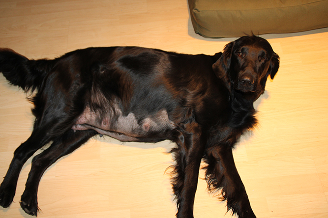 I dag er Millie på dag 57 siden første parring. Hun er god å rund å i kjempe fin form Spiser godt og koser seg på tur. Om natten må hun ut to ganger så det presser nok litt på nå. Hun måler nå 80 cm på det tynneste og 90 cm på det tykkeste . Ser egentlig ut som en rund ball :-)
