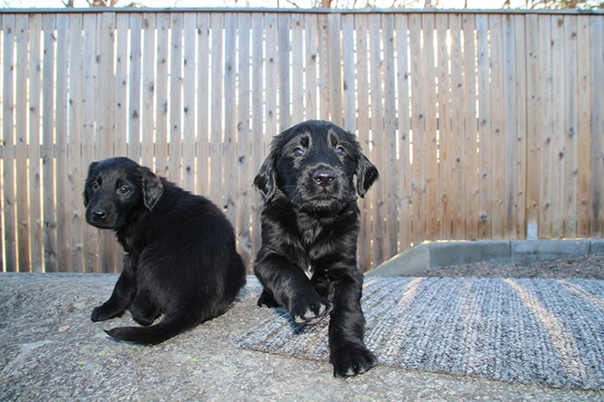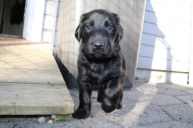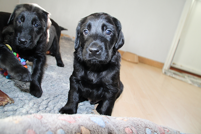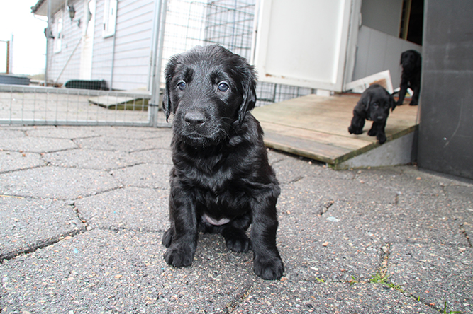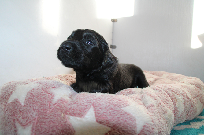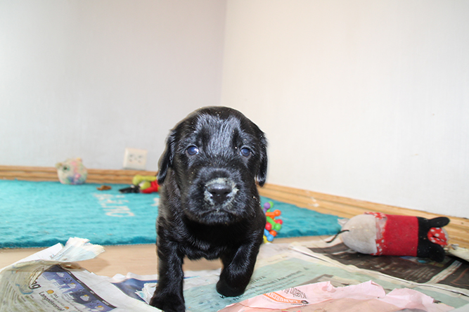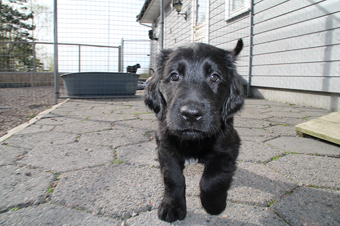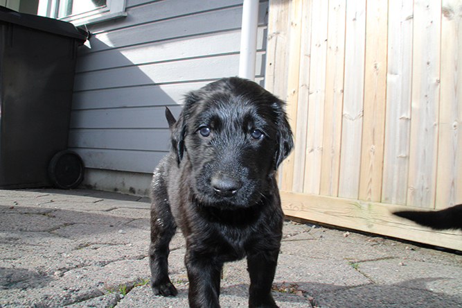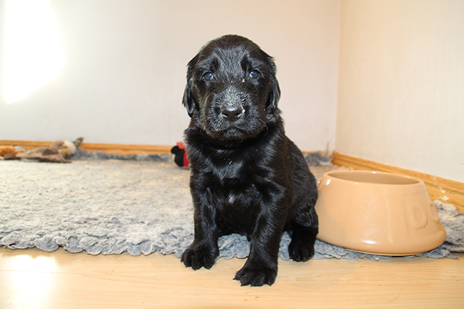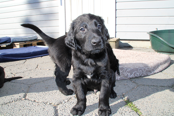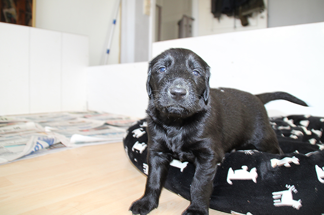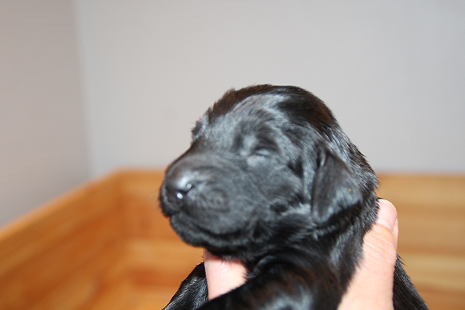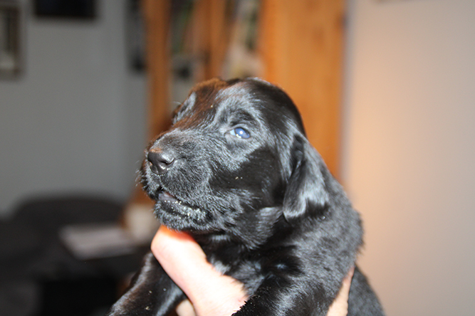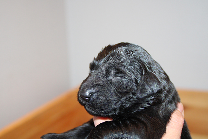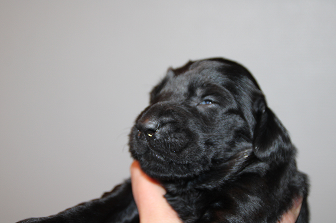 06.04.22. I dag er de skjønne små sorte gullene blitt 4 uker gamle Klo klipp er gjort nå kl 5 å vekten er sjekket ,alt er ok å de er så flinke. Oda fikk forhøyet temperatur i går men heldigvis fikk vi den under kontroll igjen i løpet av kvelden. Hun fikk en jurbetennelse i den ene puppen men er nå i god form igjen heldigvis. Ting skjer fort skal jeg love. Tror hun kan ha fått trekk av den sterke vinden selv om hun går med ull over puppene ute når vi lufter henne. Valpene passer hun godt på å ordner som vanlig her :-) Flinke Oda mamman det :-)Her er jente rumpe og Koda/ gutt rumpe