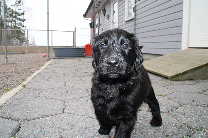 05.05.22. Det er rart med bare tre troll i huset Det synes de også I dag reiser Eros også til sitt nye hjem . Heldigvis er Mila og Saga sammen til i morgen. Alle 9 synes nok det er trist å miste alle søsknene sine. De er jo vant til at det alltid er noen der . Pass på at deres troll ikke blir alene nå i starten Det er bare trist for en liten valp. De trenger masse kos og oppmerksomhet så de føler seg trygge i sine nye hjem. De vil være der vi er siden de er vant til å være sammen hele tiden :-) Når man begynner å øve på korte økter alene så gjør man det når valpen er sliten å vil sove. Da kan man la den være alene 10-15 in av gangen å gå i et annet rom. Ha gjerne på en radio så den hører lyder å er trygg. Ikke start med for tøffe alene tider Dere får bare smellen når valpen blir eldre å det kan fort få litt seperasjons angst. Valpene er også nå renslige De har tisset og bæsjet ute nå et par uker. Så ingen aviser inne og pass på når den våkner å lær den hvor deres dør er ut Bær den gjerne nå i starten så den rekker ut :-) Her er Eros og Mila