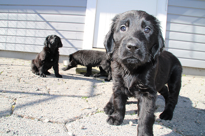 26.04.22. masse kos å lek ute i det flotte været som heldigvis kom tilbake igjen i går :-) De elsker å løpe i den store verden sammen med de store hundene. Vær obs på at valpene er utrolig trygge å tror at alle er like snille når dere får de med hjem. Pass på at de ikke kommer borti sure hunder som gir de en smell. Her er alle snille med de å de tror jo at slik er det overalt .Kimmie elsker å leke med de små Hun legger seg ned å lar de bite klatre rundt på hele seg. Hun snakker til de men er veldig mild når de biter for hardt. Elisabeth fra Agria her nå begynt å ringe rundt for å tegne forsikringen på hver og en Hun ringer til alle så dere får en tlf i løpet av denne uken :-)Hun har fått alle data på valpene med reg nr og alt hun trenger .Forsikre valpen deres med den beste forsikringen Mye kan skje med et uvørent lite kryp som aldri er der man tror den er. Veterinær er kjempe dyrt å 20000 kr forsvinner veldig fort. Vi har alle forsikret for 60000 kr i året og full dekning. Man får 10 % avslag på forsikringen når man er medlem i Norsk kennel klubb. Det er man når man automatisk er medlem i Norsk retriever klubb :-)Her er Saga og Koda.så er det alle ute i den deilig ute sengen de har når det er godt å varmt .