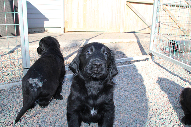 15.04.22. Deilig å være begge to hjemme å kose seg med de små og de store. I går var alle en tur på bordet å de er så fine :-) Lille Ecco på 12 uker var på besøk i valperommet for første gang i går å det gikk kjempe fint. Vi var også ute å gikk flere turer i den stoooore verden . Dvs Ute i hagen der de andre hundene er . Det var spennende det :-) Her er jente rumpe og Koda/ gutt rumpe