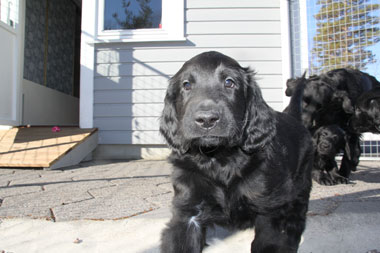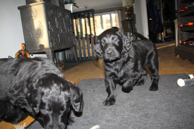 07.04.18. I dag er vi på utstilling i Bergen og Marianne og Dag er hjemme å passer de utrolige :-) de stor koser seg med masse lek og oppmerksomhet. Her er Emma og Scott