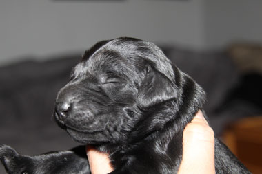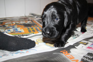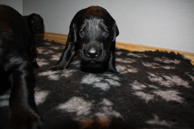 28.02.18. Nå har alle åpnet øynene. De har lyeblå øyne nå i starten. Denne fargen går gradevis over i en grå nyanse før den etter hvert blir nøttebrun. De er bare så fantastisk skjønne når de gløtter på meg med de nydelige blå øynene sine :-) Her er Gutt merket halen og Gutt nakken.