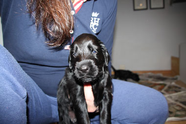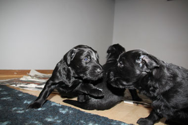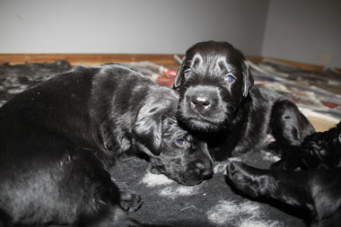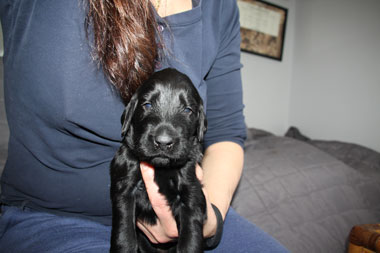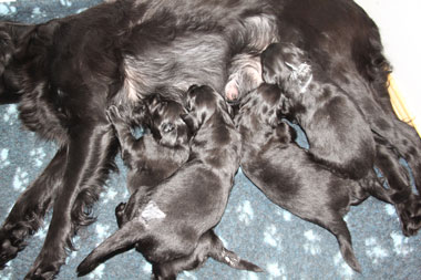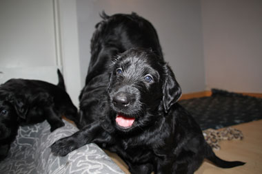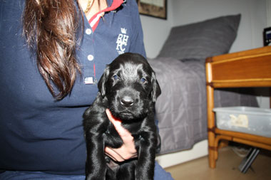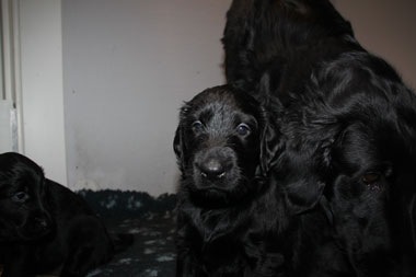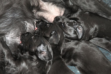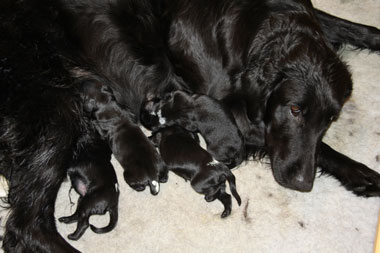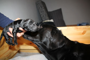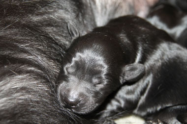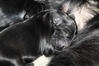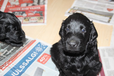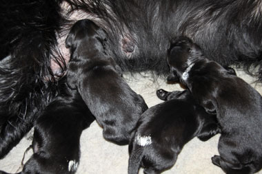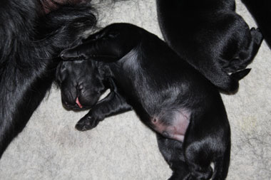 17.02.18 . Fødsel har startet nå i kveld. Nå er det kommet en tispe. Frøken Emma og 3 flotte gutter. Alle store og fine. Usikker på om det er flere eller om det er 3 morkaker vi mangler som nå er på vei ut.