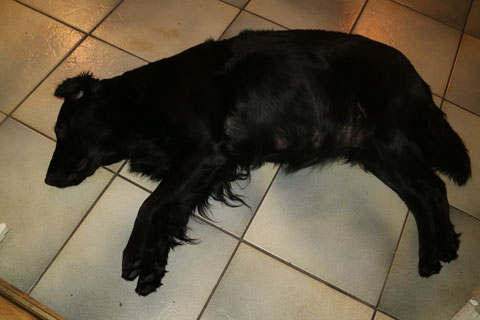 12.03.18. En utrolig dag i går på Crufts i England for Loke og Kjell. De klarte faktisk å bli nr 3 i en diger åpen klasse :-) Så det er en veldig blid Kjell som sitter å kjører mot Norge nå. Han håper å nå hjem i løpet av kvelden. De bytter på å kjøre å og sove :-) Trolla har spist maten sin av egne skåler ved siden av hverandre . Bordskikken må øves litt på for man planter fort labben i matfatet til naboen for så å stemple den i hodet med grøt :-) Men vi får bare øve. Synes de var ganske så flinke egentlig jeg :-) Her er Gutt halen og GN