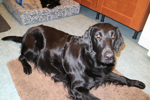 11.02.18. I dag er Giga på Dag 60 fra første parringsdag.Hun parret seg tre dager etter hverandre så vi vet jo ikke helt hvem av dagen som var eggløsning . Hun er rund og gravid. Og vi har vel aldri hatt en hund som har vært så gravid hele veien som henne. Giga vet å få det som hun vil. Akkurat nå skal maten serveres i to skåler. En med kjøtt og en med tørre kuler av tørr for.Da passer det damen å spise. Men blander vi det så vil hun ikke ha. Så da spiser hun først den ene skålen så den andre. Kjell blandet alt sammen i stad til middagen hennes og ville ikke høre hva jeg sa. Og nei det kunne han spise selv. :-) Så egne meninger har den gravide prinsessen. Hun er med på tur så klart i bånd til hennes store irritasjon ,men stor koser seg på tur. Tror ikke det skjer noe her de første dagene men vi passer nøye på hele tiden å følger tempen hennes . Den må gå ned mot 36 grader for så å gå opp igjen før fødsel starter .Her er prinsessen som styrer huset her om dagen :-)
