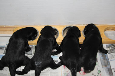 11.03.18. Trolla stor koser seg med to måltider og vi får se om ikke vi kan begynne å øve på bordskikken sammen alle 4 nå :-) Tror også at vi skal øke til 3 måltider i dag. Giga gir jo masse melk enda så det er jo ikke det store behovet :-) Hun er en skikkelig melkemaskin som bare øser ut mat til de skjønne :-) Her er Emma og GR.så er det alle.
