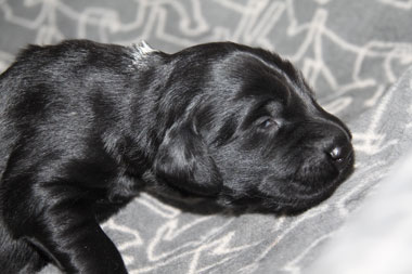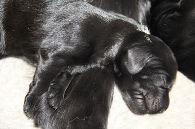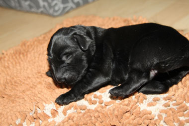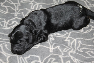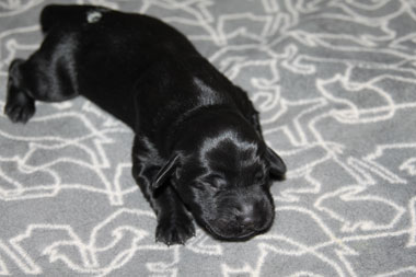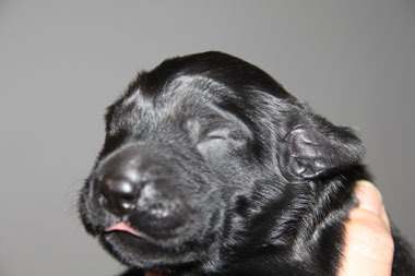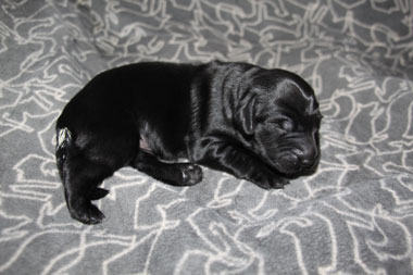 20.02.18. Nå er små trolla blitt tre døgn gamle. Det er veldig stille og rolig og Giga ordner alt. Å det er deilig. Giga kunne nok tenke seg å hente Fiona sine valper også når hun hører beby lyder fra de men det får vi passe på så hun ikke gjør :-) Hun er en skikkelig hønemor :-) Trolla vokser godt så man ser det fra morgen til kveld. Her er Gutt merket nakken og gutt merket halen.