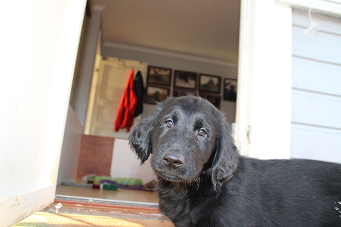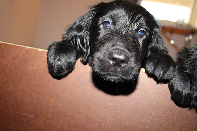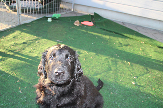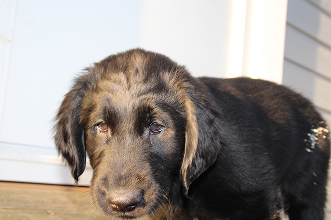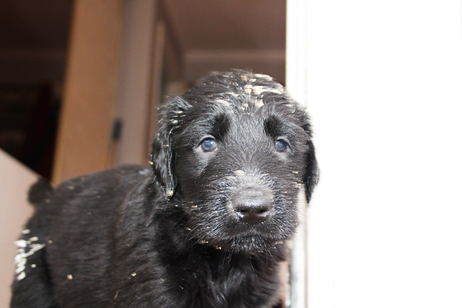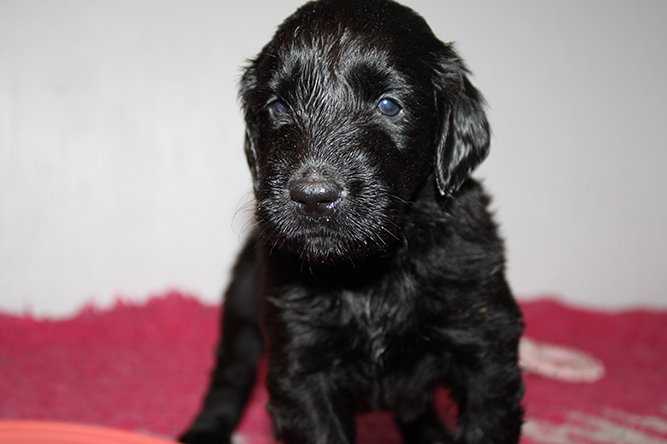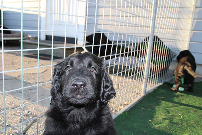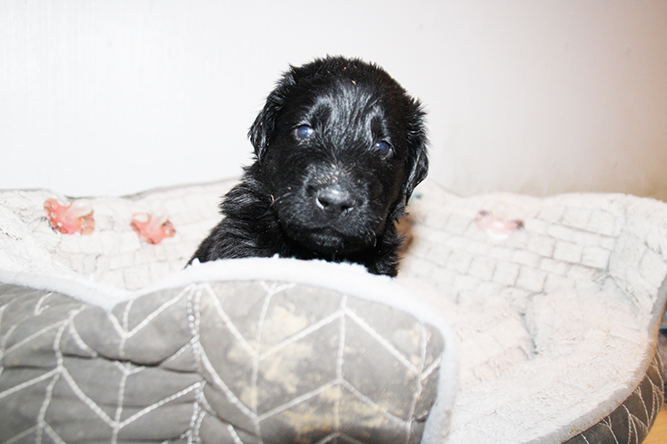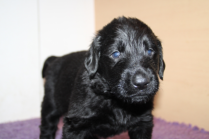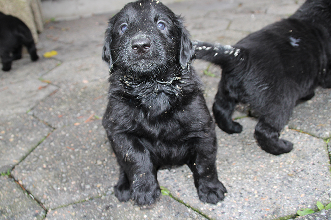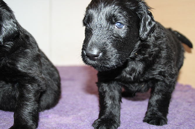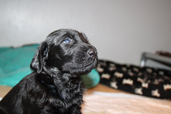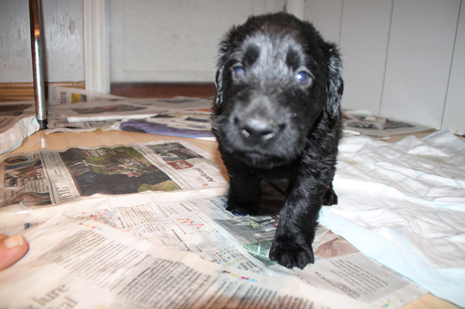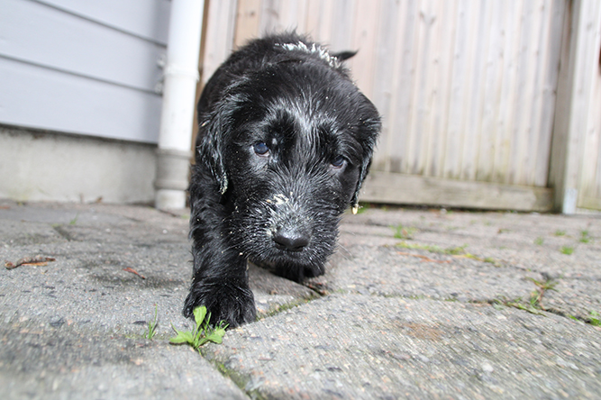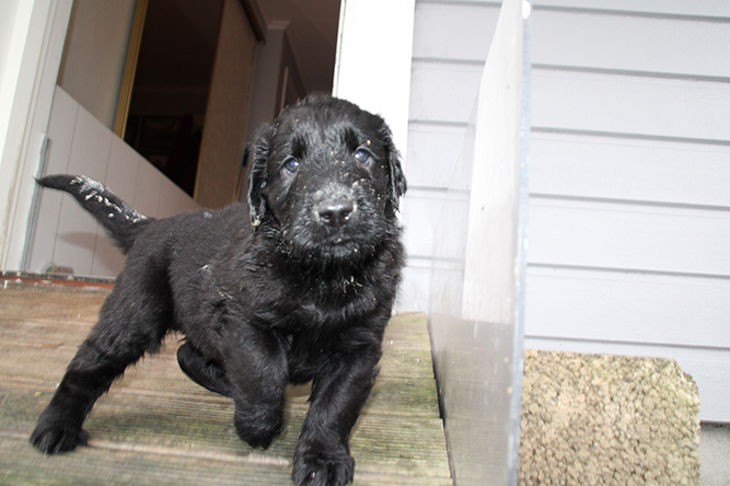 14.10.25. Utviklingen går i 100 her. I dag må vi åpne mer plass . De er blitt sykt flinke til å gå ut på avisene å gjøre i fra seg. I dag skal de få "gressplen" ved døren .jeg skjønner faktisk ikke hvordan folk klarer å ha valper i en liten valpekasse frem til 3 ukers alder. For her går det unna. De våkner å går helt ned i andre enden av innhegningen sin . Å de vokser så det knaker så det blir jo fort trangt. Hørselen har nå åpnet seg å de hører veldig godt når vi kommer inn i rommet. Da blir det liv :-)Her er gutt halen og gutt hode