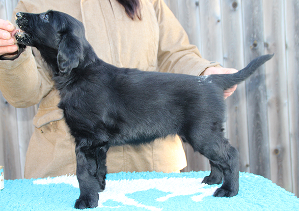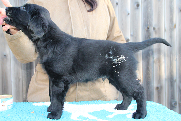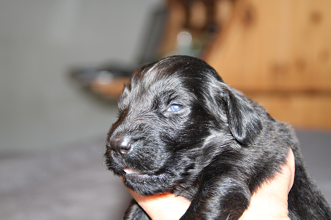 04.10.25. I dag er de skjønne små blitt en uke gamle. Klo klippen ble gjort i går kveld og det gikk fint . Selv om de ikke akkurat sitter rolig når jeg prøver å klippe klørne :-) I dag er det mark kur på menyen. Den må de ha 4 ganger før de skal flytte herifra . Smaker aldri så godt men lurer det i de. Kimmie sin temperatur er mye bedre. Hun har litt mindre melk foreløpig etter infeksjonen så vi hjelper til med flaske hver 3 - 4 time så alle får i seg nok. De koser seg med den ekstra melken å er så fornøyde :-)Nå klokken 03.30 er stormen på full fart her ute. Så turte ikke vente med å sende ut valpedagboken i tilfelle nett og strøm forsvinner etter hvert her .Det uler i huset men hundene tar det helt med ro. Her er Gutt merket nakken og jente merket rygg.