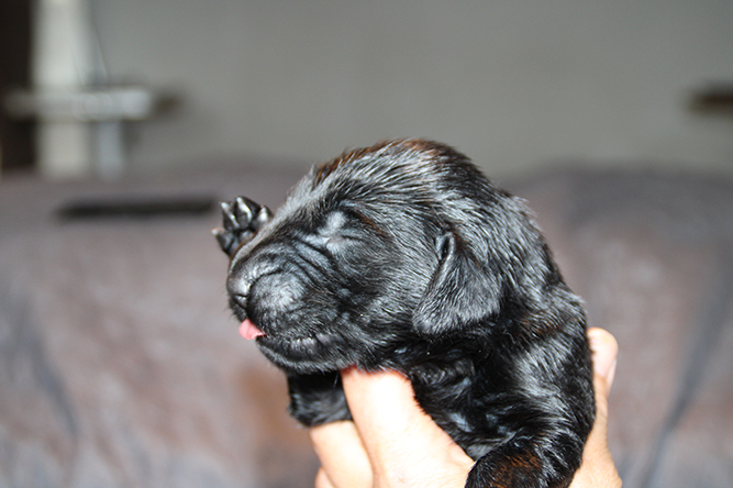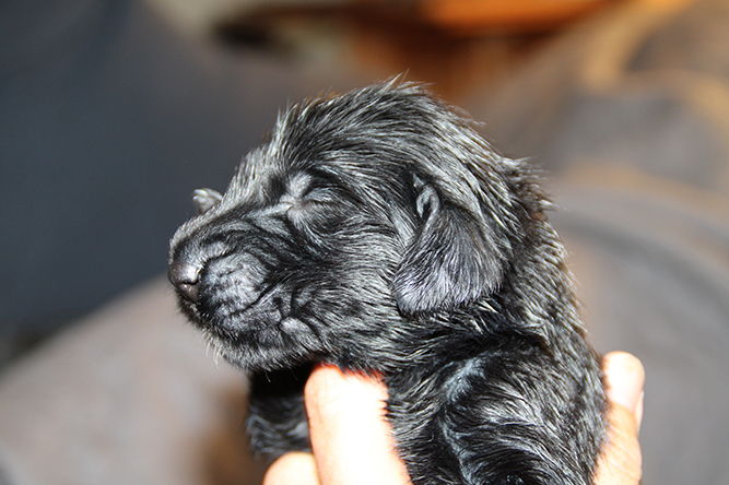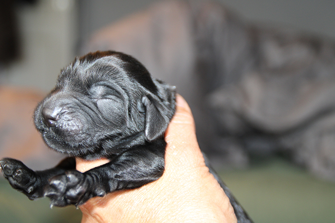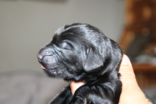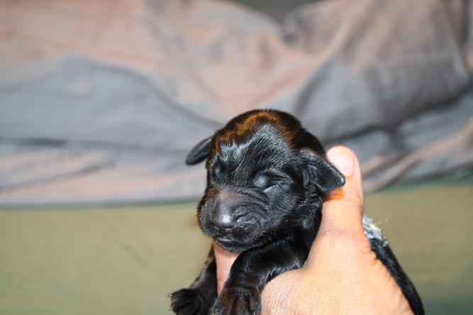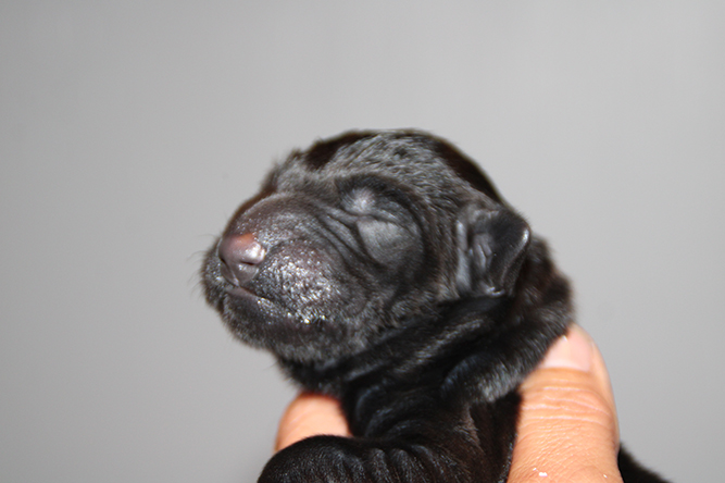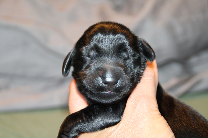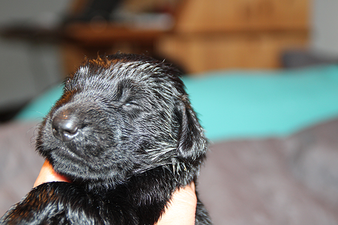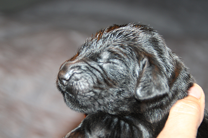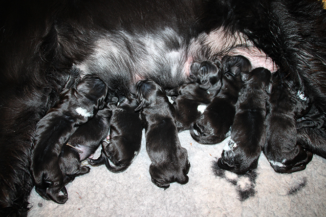 30.09.25. I dag er de skjønne tre døgn gamle. De vokser og trives.Det er mer fart i de når de våkner å skal ha melk. Hvis ikke Kimmie er kjapp til å legge seg så yrer det rundt henne. Noe hun tar med stor ro. Hun vet akkurat hvor hver og en er å legger seg ned der det er ledig plass å aker seg inntil valpene sine. Vi var ute å gikk en litt lenger tur også i går kveld. Kimmie stor kosa seg og var også veldig fornøyd når vi kom inn igjen. :-) Da ble hver å en vasket godt . Her er jente merket rygg og gutt merket halen
