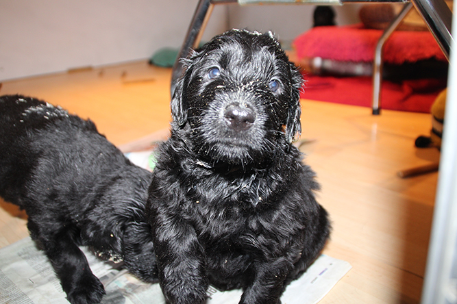 20.10.25.Leken er blitt så gøy å sitte å se på når de er våkne. De buser ,vifter med de små halene ,bjeffer og har det så gøy.Fasinerende å følge utviklingen deres. I går startet vi å øve på bordskikken. De har jo grøt i hele ansiktet når de spiser av skålen sin. For så å stemple den rundt på kroppen til de andre. De får også god hjelp å blir suttet å spist på når de har grøt over det hele. Kimmie og vi vasker og vasker :-) Her er GVB og JR