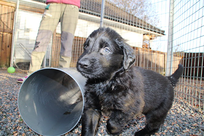 02.11.25. I går var det skikkelig dårlig vær her med masse regn å sterk vind. Å ha 9 troll som nå er blitt vant med å gå ut hver gang de må på do som i en periode ikke fikk lov fordi det blåste stiv kuling. Ja det er en utfordring. Heldigvis løyet det mer utover kvelden så de fikk løpt litt ute. Grethe har passet alle helle helgen å de har fått masse kos og oppmerksomhet. Mens vi har vært mest på nabo rommet med utblokking å fødsel. Tusen millioner takk Grethe for at du har gitt de all den kosen og oppfølgingen.Det er mye jobb med valper :-)Tenker det blir godt å komme hjem å SOVE etter en lang helg her :-) Idag skal vi ta de med en tur i den store verden ute der de voksne er . Det blir nok spennende. Besøk i stua blir det også på formiddagen . Her er GHB / Milan og GVB/ MIlo