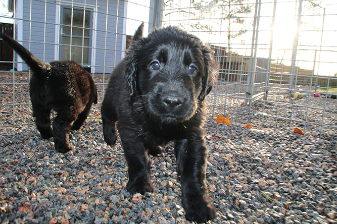 23.11.25 . Siden vi er avgårde å NKK utstillingen På melsomvik hele søndagen . så kommer valpedagboken for Utsøkte for søndag litt tidligere . Nå er det bare to troll som er igjen. De får kose seg sammen frem til tirsdag hvor også Milo reiser. Lykke blir enda noen dager til :-) I løpet av søndagen flytter de inn på nabo rommet å bytter plass med Verdige . Så satser på at de synes det er ok. Vi var å gikk litt tur i hagen i går å det var populært. Da fikk de løpt skikkelig i fra seg. Tror Jeanette som passer nå dette døgnet tar de en del i stua også mellom slagene med de andre små :-) Tilbake meldingene på de sorte gullene som har flyttet er super :-) I løpet av lørdagen reiste Lakris og Loke også.Deilig å høre dette :-) Her er Lykke og Milo.