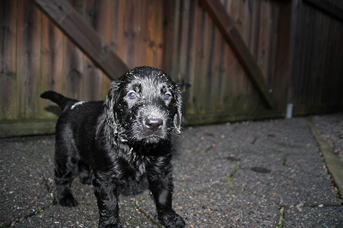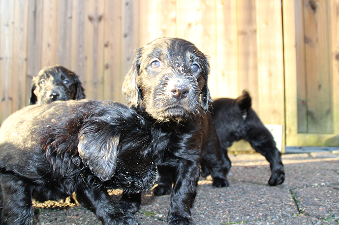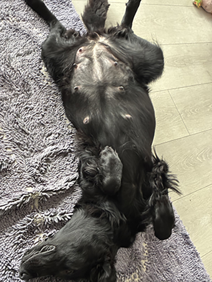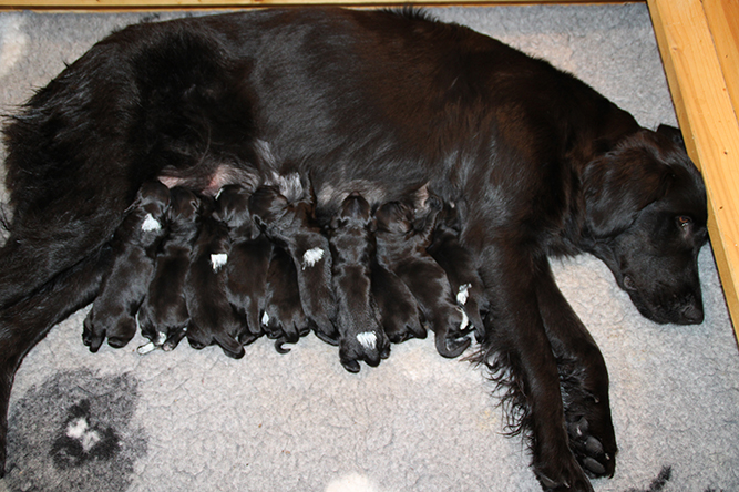 Nå er kl 09.45 det er kommet 3 store tisper Flere vil ut Alle drikke å er så fine :-) Fødsel har startet kl 07.45 . første er født stor tispe valp :-)