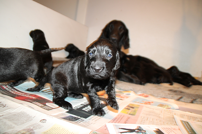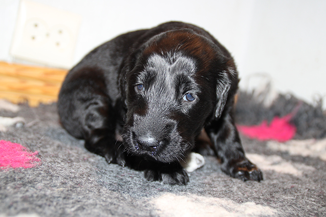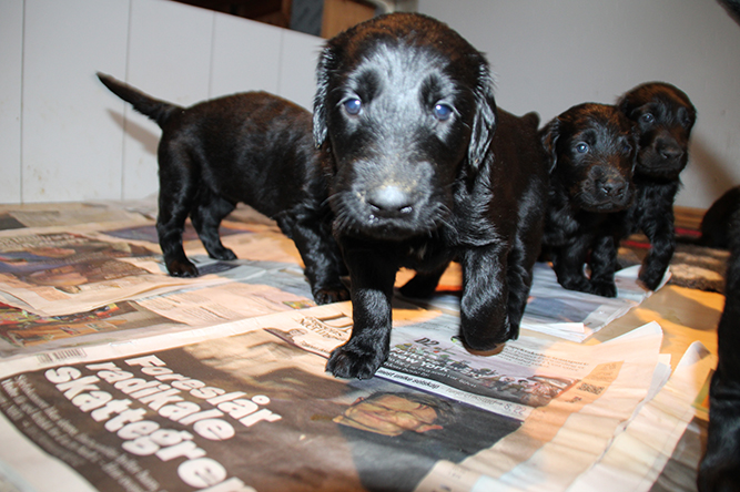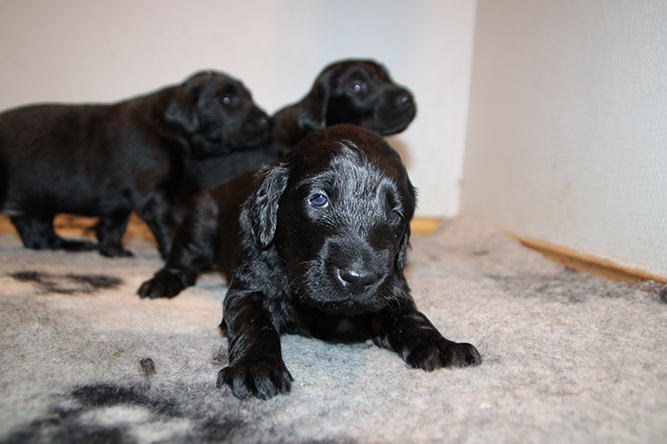 12.11.25. Det skjer så mye så fort i utviklingen. Nå har alle øynene godt åpne. De beveger seg kjapt med å vakle dra seg gjennom valpekassen. Det er blitt trangt så vi må åpne opp for mer plass om en dag eller to. De spiser kjempe godt å eser ut så man ser det fra morgen til kveld.Jeg elsker å bare å sitte å se på de når de er våkne og ordner og kravler . Alt som står i hodet på de denne korte stunden er melk :-)Saga gir melk ca hver 4 time nå. Da åpner hun kranene å slipper ned masse melk. Her er JR og GR