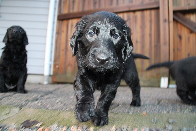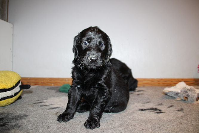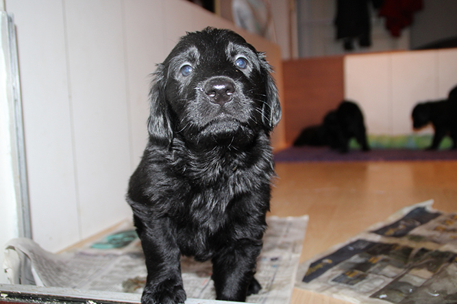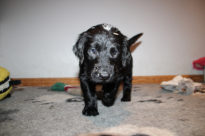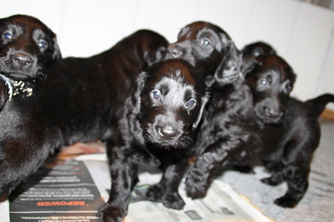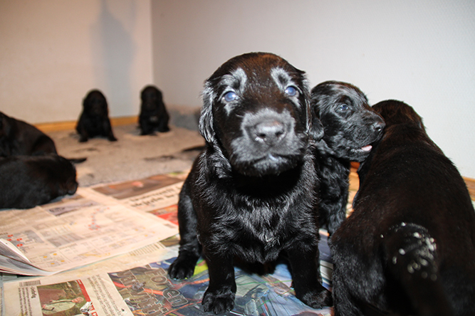 06.12.25. Tenk 5 uker i dag å nå har alle navnene kommet å valpene er registrert i NKK. Hvem valp som får hvem navn er vi ikke havnet på enda. Tenker å bruke først kommende uke på hvem gutt som skal hvor så bruker vi neste uke på hvem tispe som skal hvor :-) I går kveld ble alle klør klippet alle ble vekt sjekket - gått opp ca 1 kg den siste uken :-) - og alle fikk en mark kur :-) De er blitt så flinke nå til å komme ut når jeg roper eller blåser i fløyten. Nå krysser jeg bare fingre for at det kan slutte litt med alt dette regnet så vi kan kose oss mer ute. Men stua er populær da :-) Her er JVB og JHB