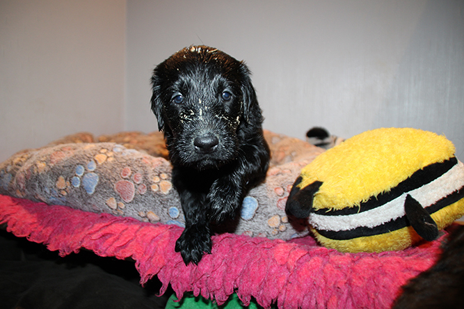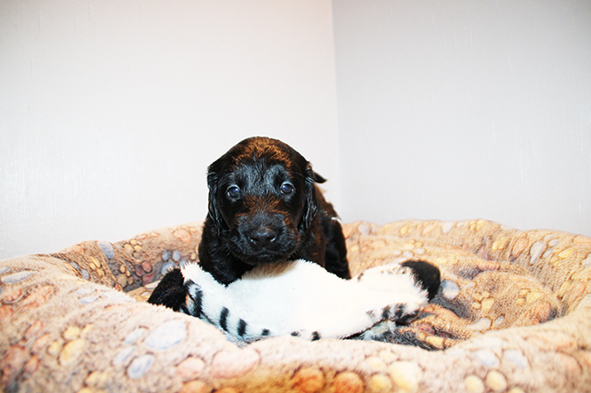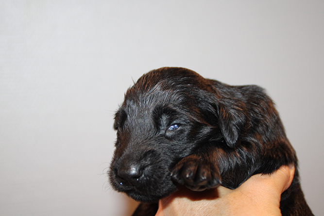 14.11.25. I går fikk de smake litt beby grøt for valper. Det var kjempe godt. De ville gjerne ha mer men vi får ta litt hver dag . De får mer en nok melk så de har det helt fint. Det er et øredøvende liv når de våkner nå. Å de ligger ikke rolig :-) Jeg legger ut videoer daglig på av-zan-iaz sien på face for dere som skal ha valp. Gøy å følge med der også. . Her er jente rygg og gutt rygg.