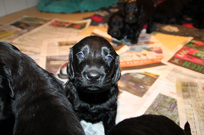 16.11.25.Nå begynner de å skjønne litt mer av å komme seg utpå avisene. DVS de skjønner at for kroppen skal ut dit men har ikke skjønt at hele kroppen skal være med :-) De er mer våkne nå de korte øyenblikkene de er våkne. i går fikk de litt beby grøt både morgen og kveld. Mamma tusen masse takk for jobben med å sitte å passe på her i går mens vi hadde valpetreff utenfor. Det var helt gull :-) Her er JVB og JHB