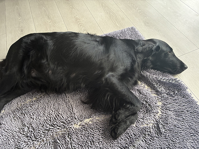 27.10.25. En rolig natt. En tur ut i løpet av natten ellers sov hun som en stein. Maten går ned på rakett fart :-)
