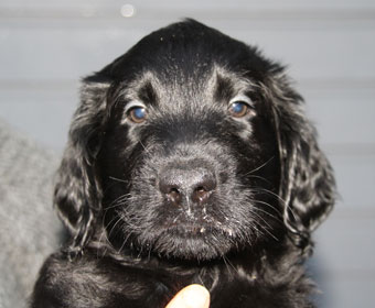 03.12.19. Nå har vi sluttet med å male opp maten til grøt. I går fikk de valpematen i hele kuler bare oppvannet med varmt vann og litt puppy vom i . Det var godt det :-) De klatrer nå lett over stengslet fra valperommet så der må vi finne en ny løsning i dag :-) her er Frida og Bonzo