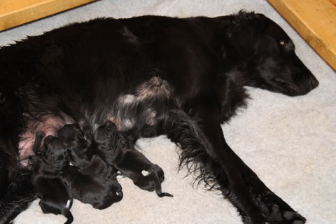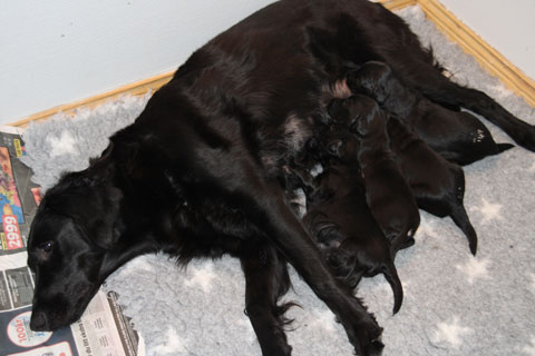 23.10.19.sel har startet. Nå er det kommet en jente og en gutt :-) Nå er det kommet 3 gutter og en jente. Giga har fremdeles små veer. så det kan ligge flere innunder ribbene eller det kan være den ene morkaken vi mangler . Giga stor koser seg med sine små. De er bare helt til å spise opp :-)