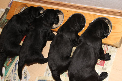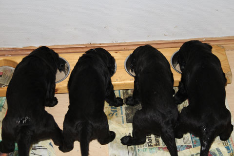 20.11.19. I dag er de skjønne små 4 uker gamle. Og ny runde med klo klipp å en tur på vekten i dag. Nå er det 4 måltider de små får hver dag + melk fra Giga da så klart. De stor koser seg med maten sin . Og er kjempe flinke til å stå pent å spise av hver sin skål. I dag er det første besøket her hos de skjønne trolla. dette blir spennende med helt fremmede mennesker som kommer å skal kose. tenker det blir veldig gøy. De er noen ordentlige kose valper :-) elsker å sitte fanget å få kos . her er Atlas/Gutt nakken og Baltogutt merket halen.Så er det alle 4 som står så pent å spiser :-)