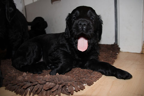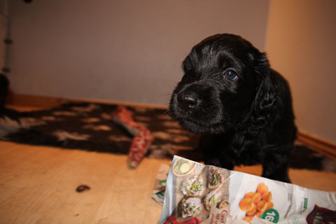 19.12.19. I går reiste Bonzo Balto og Frida. Tilbake meldingene var supre i går kveld. Alle tre fikset turen hjem godt å gjorde seg kjent i sin nye verden. Atlas skjønte ingen ting her på kvelden. Hvor hadde alle gjemt seg hen? Det var godt å ha både mamma Giga og fetter Link å trøste seg med da. Atlas har sovet godt i natt ,var ute å tisset kl 3 for så å sove frem til kl 5 nå hvor vi starter dagen. Nå var det ny runde med å lete etter søksnene. Men etter en tur hvor han tisset og bæsjet og så fikk maten sin så ligger han nå å koser seg med et grise øre.De store er skogen en tur :-)I dag kommer hans familie også å henter han så da får han også oppleve den store verden :-)Det skal bli bra. Jeg har det ikke bra nå når de reiser :-) Skjønner jo godt at det er riktig men du som jeg savner de :-) Her er Atlas og dette er den siste dagen med valpe dagboken Zøkende. Vemodig men gjett om jeg gleder meg til valpe kurs her på mandager for de som kommer der og til første valpetreffet som er 19 januar :-)