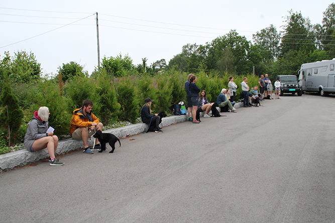 Etter en god økt med dette så alle har noe å fortsette med å trene hjemme så tok vi en velfortjent lunsj med grilling å skravling. Samt utstyr for de som ønsket det fra Musti til gode priser :-) Det er så deilig når man kan snakke med andre med valp på samme aldre å dele sorger og gleder :-) Etter den første økten var jo trolla vel slitne. Men vi viste felt søk og hvordan man lærer inn dette. Husk at 5 minutters søk tilsvarer faktisk en halvtimes tur med hodebruken :-) Trolla var flinke å løp ut å jobbet. Innkomstene må vi jobbe litt mer med men jammen var de flinke :-)
