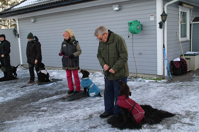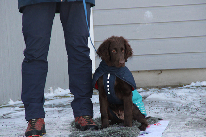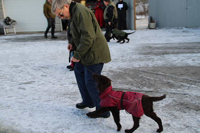 Vi var veldig heldige med været selv om det var litt kaldt :-) Vi fikk godt igjennom på plass , sitt bli sittende ,dekk,bli ligende, stå , bli stående og innkalling. Da var valpene kjempe slitne å klare for en lunsj. Det var vi to bente også :-)