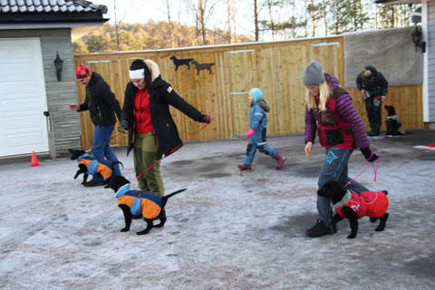 Norah var kjempe glad for å se igjen trolla sine. Hun ordnet og styrte og kjente igjen alle. Og alle ble sjekket grundig:-) Etter en god trenings økt på godt å vel 1 1/2 time var alle veldig slitne i hodet. Da fikk de leke litt sammen løse. Det var populært. Så var det pølse grilling og kake spising på oss. Samt utstyr fra Musti for de som ønsket dette.