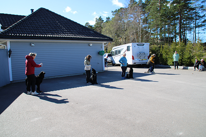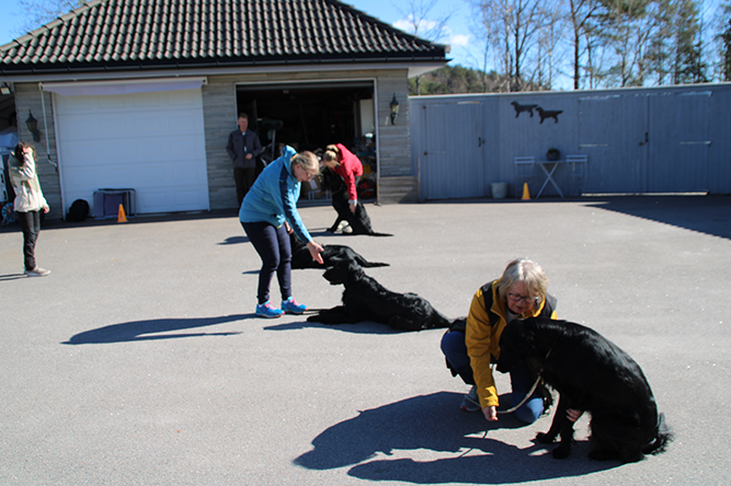 En flott gjeng delte denne søndagen med oss :-) Vi startet dagen med å gå igjennom alle øvelsene som er i klasse lydighet. Alle har gjort jobben hjemme og alle funket kjempe fint. Det var god kjemi mellom hund og fører :-) Etter nesten 2 timer med dette prøvde vi oss på søk. Å jammen løp alle ut lette og fant . Litt jobbing med avleveringene må noen gjøre men dette synes de var gøy.